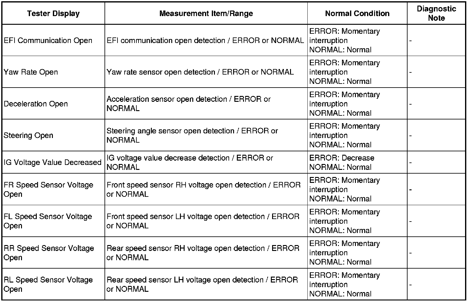 * The ERROR display on the Techstream remains on for 1 second after the harness signal changes from momentary interruption (open circuit) to normal.