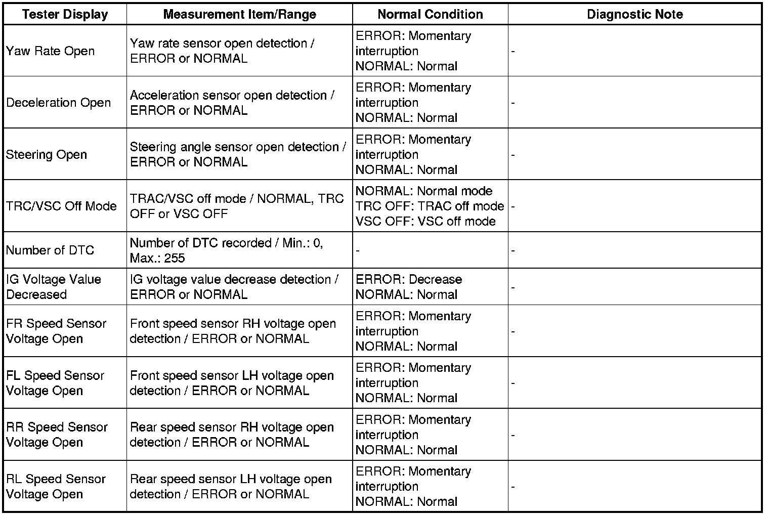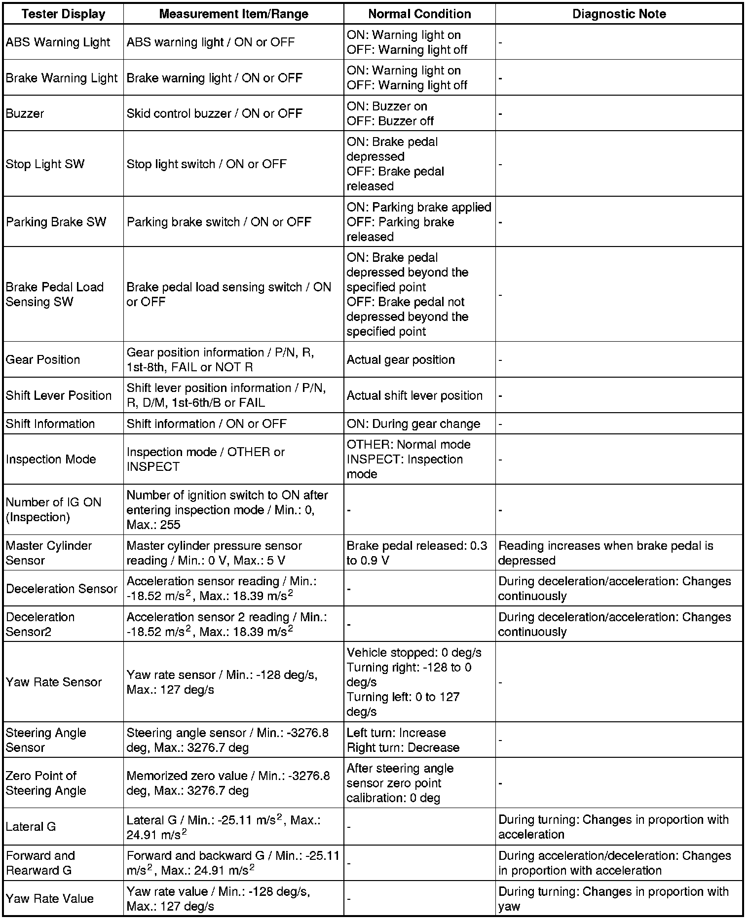 Using the Techstream to read the Data List allows the values or states of switches, sensors, actuators and other items to be read without removing any parts. This non-intrusive inspection can be very useful because intermittent conditions or signals may be discovered before parts or wiring is disturbed. Reading the Data List information early in troubleshooting is one way to save diagnostic time.