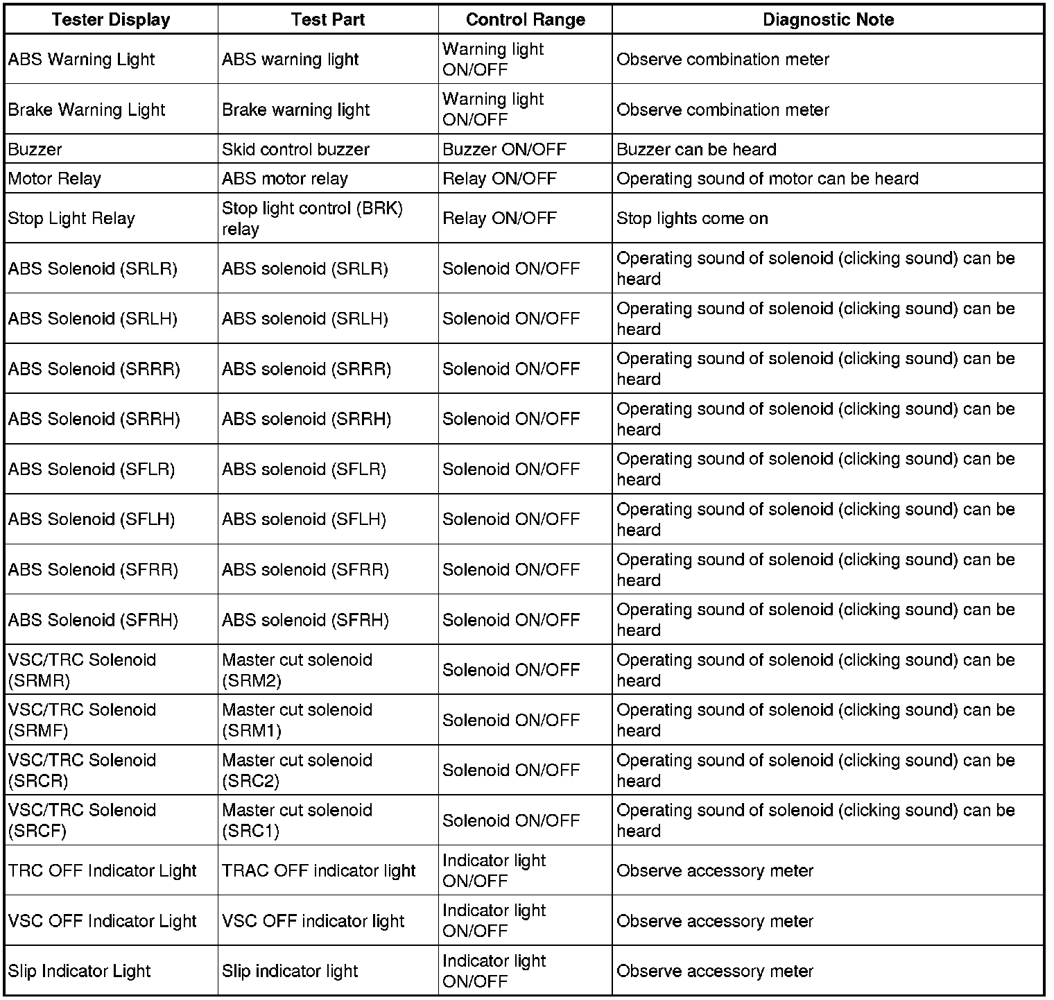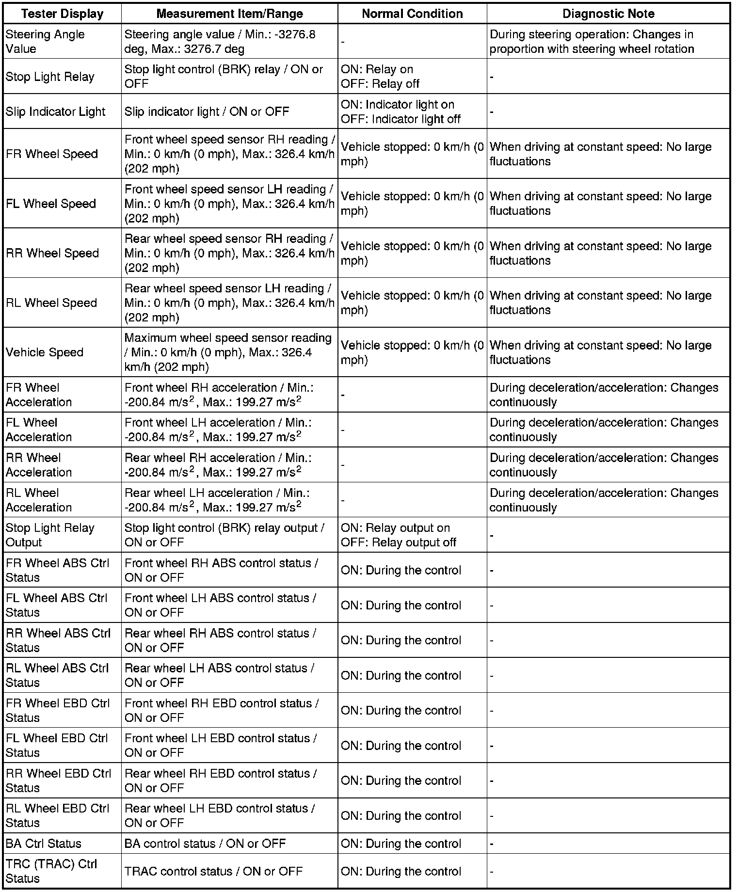 BRAKE CONTROL / DYNAMIC CONTROL SYSTEMS: VEHICLE STABILITY CONTROL SYSTEM: DATA LIST / ACTIVE TEST