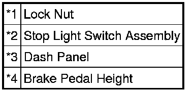 If the pedal height is incorrect even if the push rod length is adjusted, check that there is no damage to the brake pedal support assembly and dash panel.