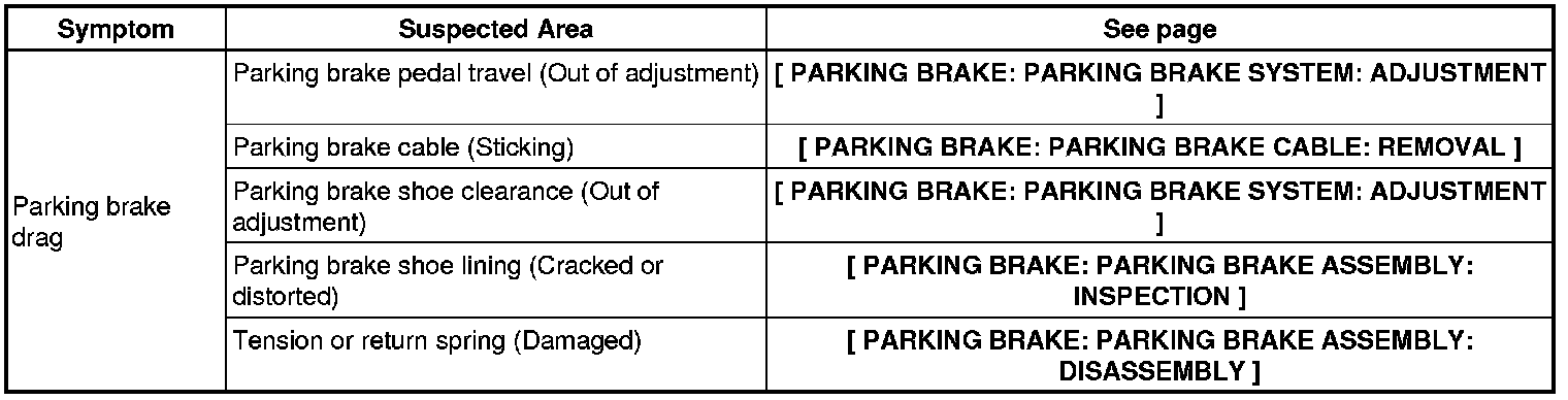 PARKING BRAKE: PARKING BRAKE SYSTEM: PROBLEM SYMPTOMS TABLE