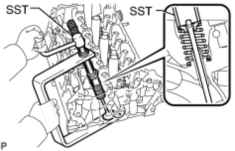 (b) Using SST, push in the intake and exhaust valve oil seals.