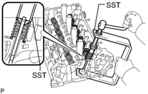(b) Install the valve, compression spring and spring retainer to the cylinder head.