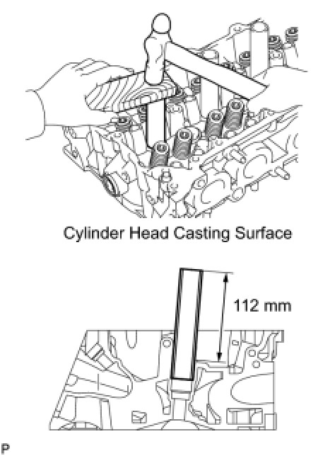 (b) Using a wooden block and hammer, tap in the spark plug tube to the specified protrusion height.