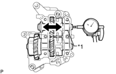 (a) Using a dial indicator, measure the thrust clearance while moving the No. 1 balance shaft back and forth.