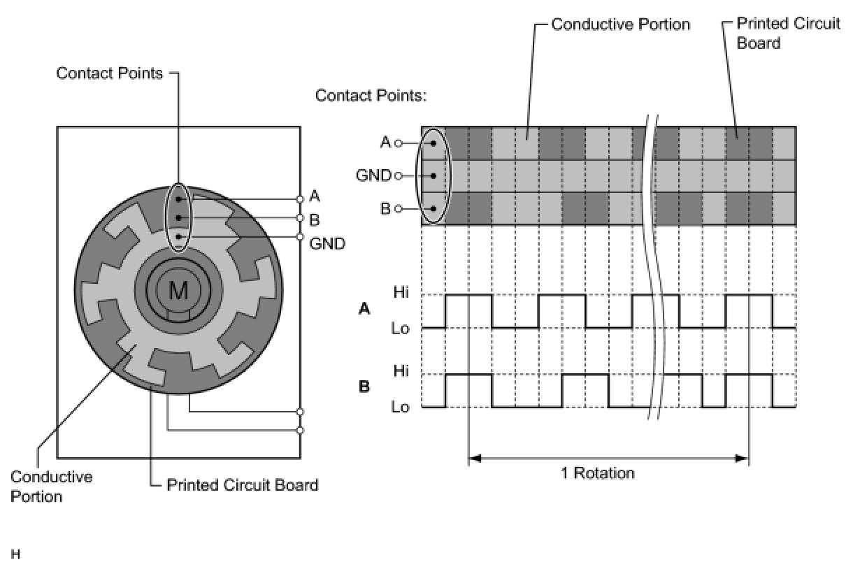 The pulse pattern type servo motor consists of a printed circuit board and a servo motor. The printed circuit board has three contact points, and can transmit two ON-OFF signals to the A/C amplifier based on the difference of the pulse phases. The BUS connector can detect the damper position and movement direction with this signal.