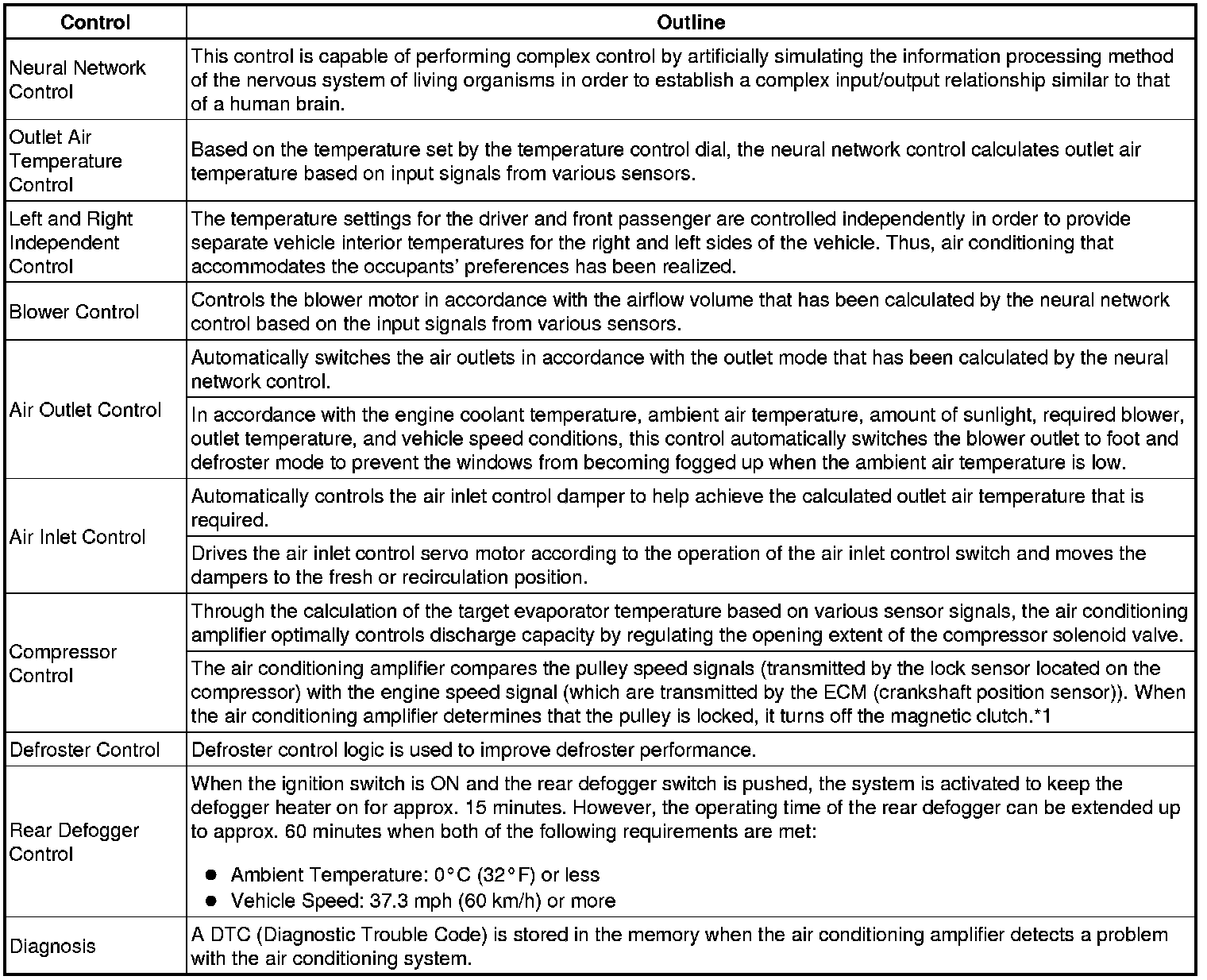 * In the previous automatic air conditioning systems, the A/C amplifier determined the required outlet air temperature and blower air volume in accordance with the calculation formula that has been obtained based on information received from the sensors.