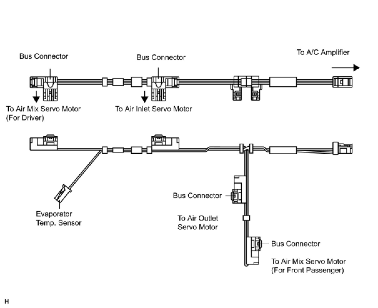 (a) A BUS connector is used in the wire harness connection that connects the servo motor from the A/C amplifier.