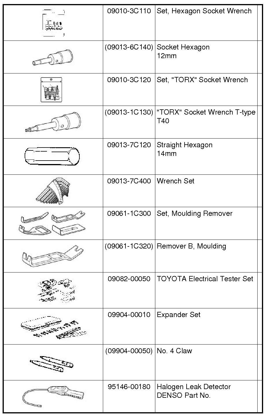 PREPARATION: HEATING / AIR CONDITIONING: RECOMMENDED TOOLS