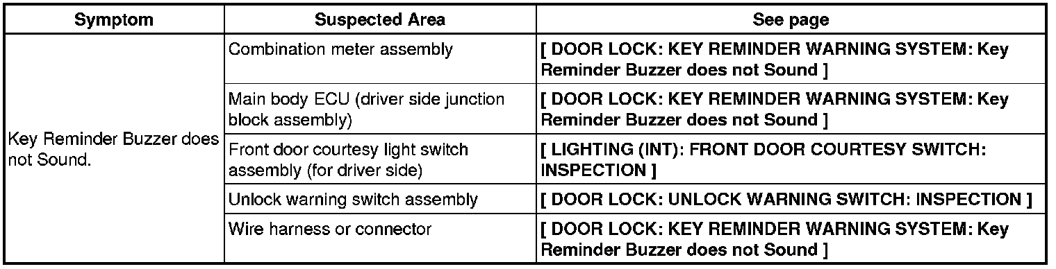 DOOR LOCK: KEY REMINDER WARNING SYSTEM: PROBLEM SYMPTOMS TABLE