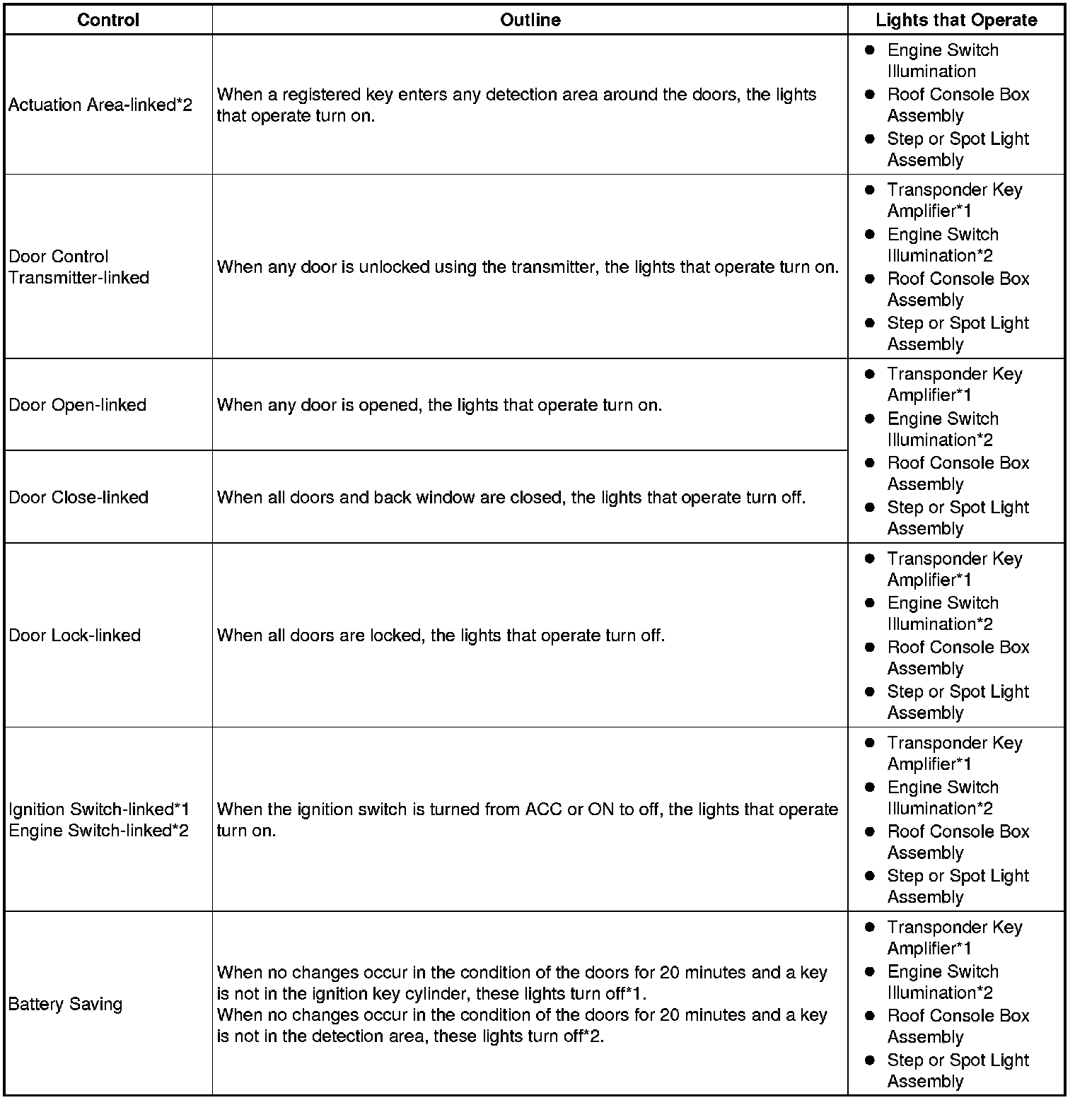(a) The illuminated entry system has the following control functions: