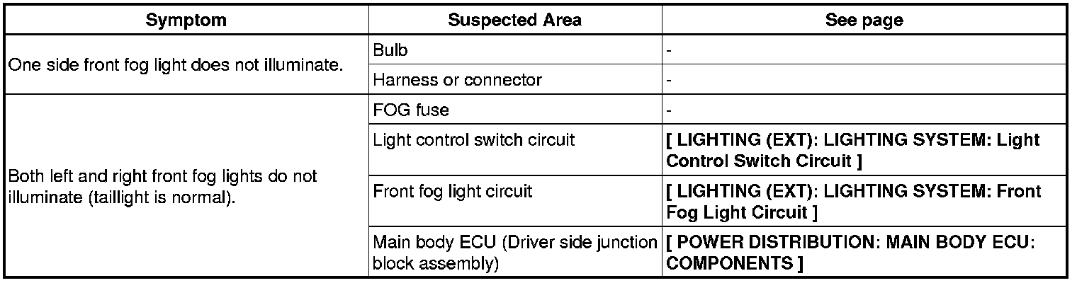 LIGHTING (EXT): LIGHTING SYSTEM: PROBLEM SYMPTOMS TABLE