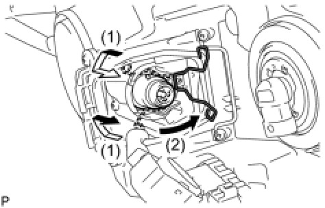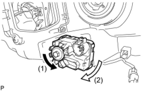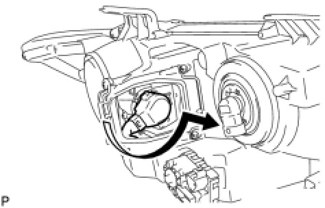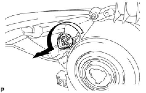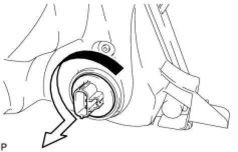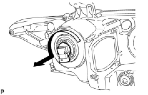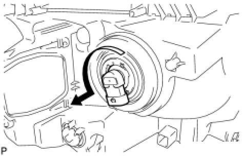 (a) Turn the No. 2 headlight bulb in the direction indicated by the arrow shown in the illustration, and remove it.