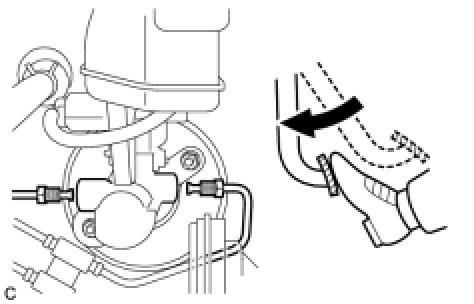 * Do not allow brake line to twist and interfere with other parts or body during tightening.