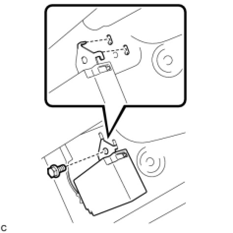 (b) Engage the 2 tabs into the holes as shown in the illustration to install the tire pressure warning antenna and receiver.