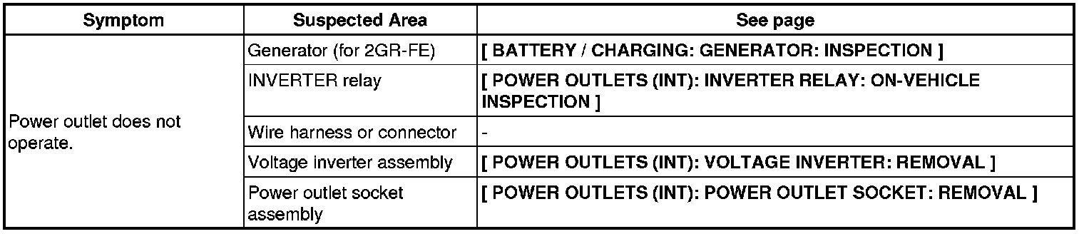 POWER OUTLETS (INT): ACCESSORY SOCKET SYSTEM: PROBLEM SYMPTOMS TABLE