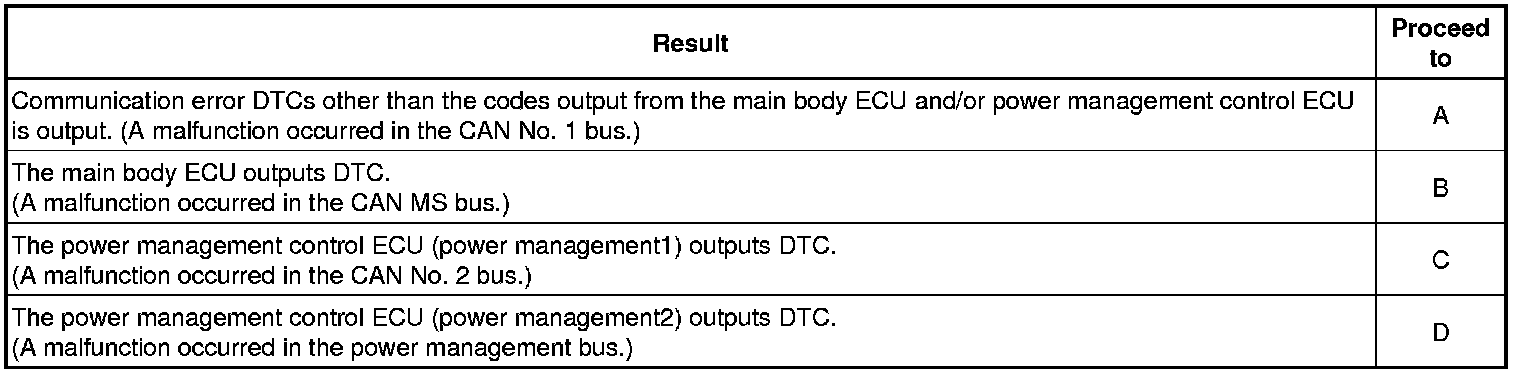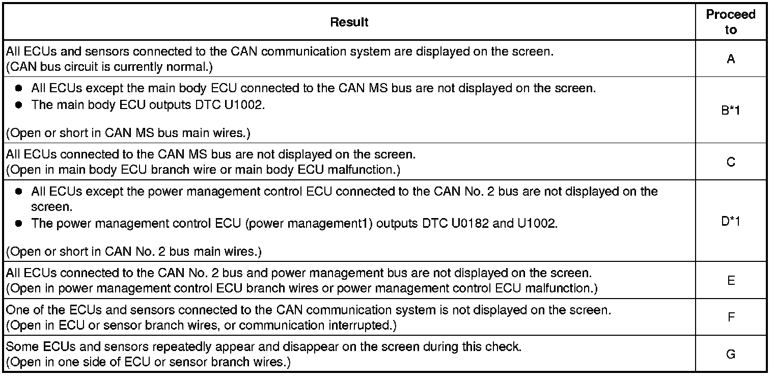 * *1: See the Diagnostic Trouble Code Chart instead of the Communication Stop Mode Table when some of the ECUs connected to the CAN MS bus and CAN No. 2 bus are not displayed on the screen CAN Communication System.