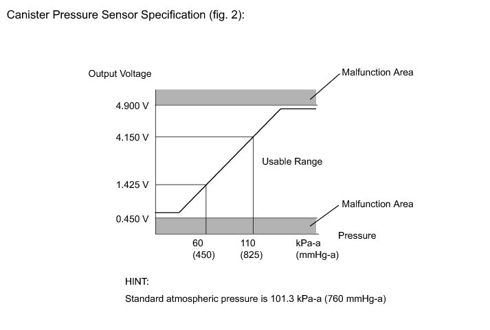 The vent valve is turned off (open) and the EVAP pressure is measured. If the variation in the pressure is less than 0.4 kPa (3.0 mmHg), the ECM interprets this as the purge VSV being stuck closed, and illuminates the MIL and sets DTC P0441 (2 trip detection logic).
