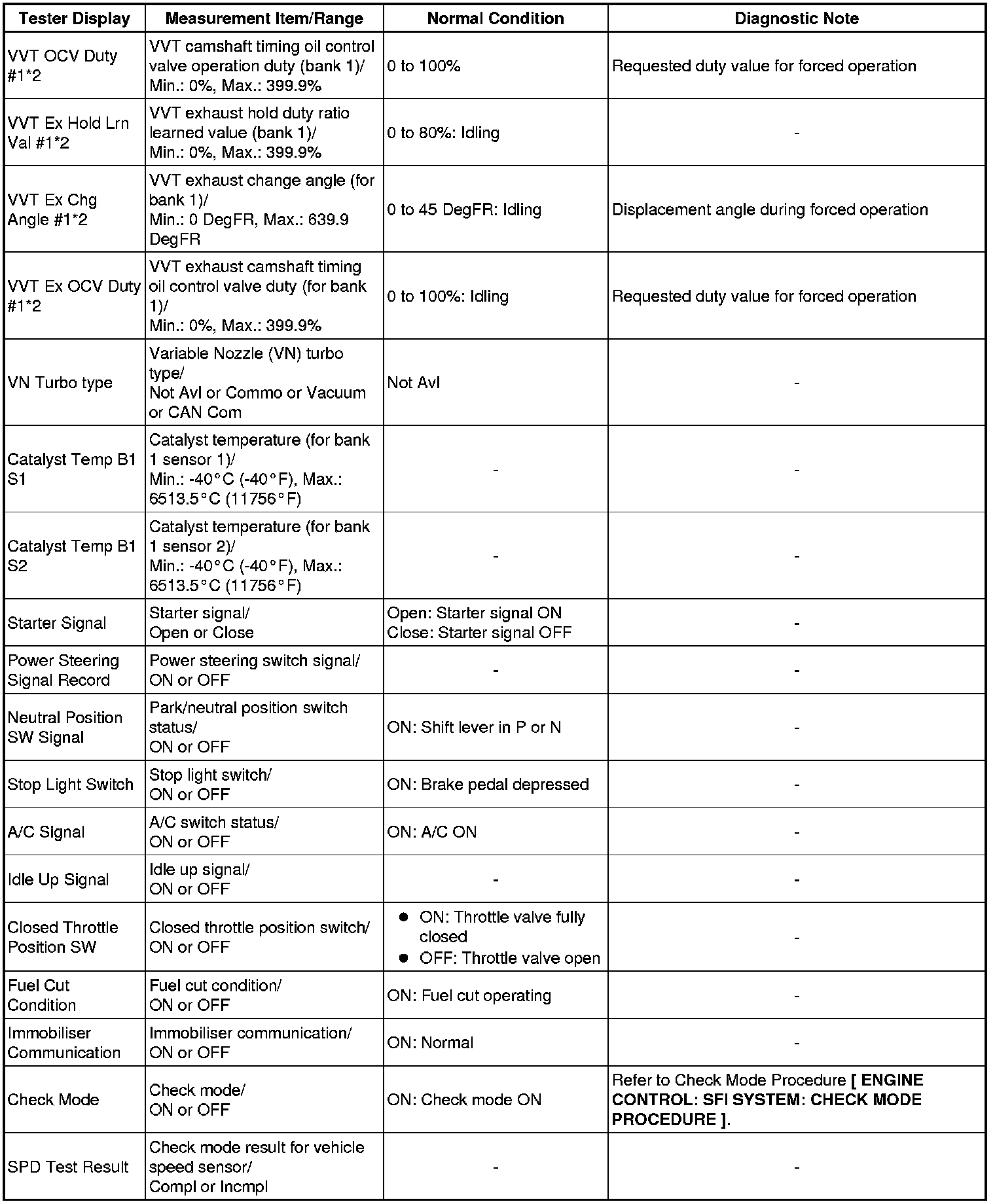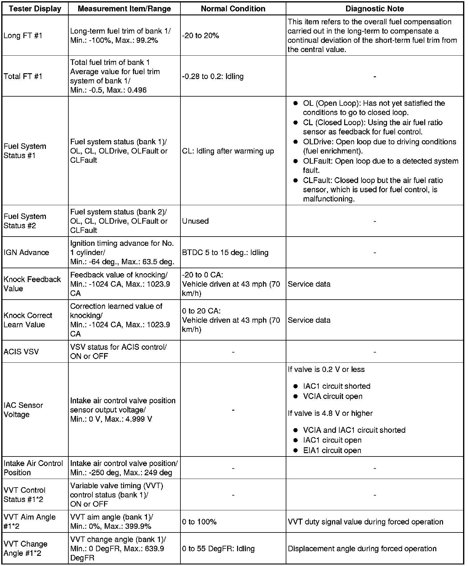 * *2: Data List values are only displayed when performing the following Active Test: Control the VVT System (Bank 1), Control the VVT Linear (Bank 1), Control the VVT Exhaust Linear (Bank 1). For other Active Test, the Data List value will be 0.