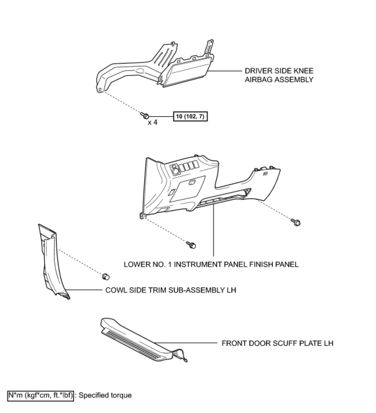 SUPPLEMENTAL RESTRAINT SYSTEMS: KNEE AIRBAG ASSEMBLY: COMPONENTS