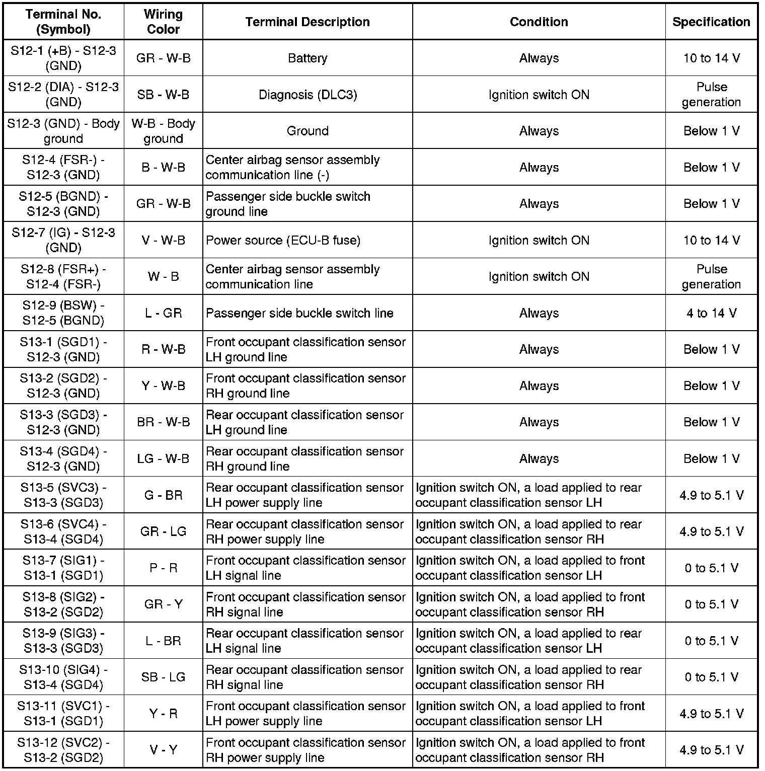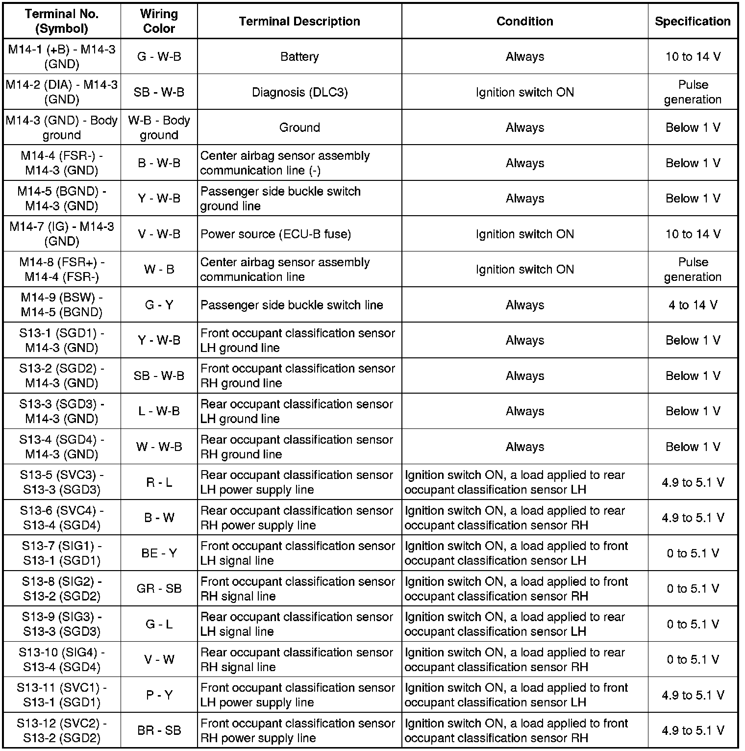 SUPPLEMENTAL RESTRAINT SYSTEMS: OCCUPANT CLASSIFICATION SYSTEM: TERMINALS OF ECU