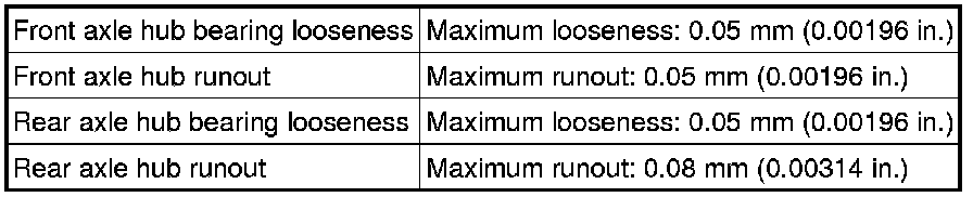 SPECIFICATIONS: AXLE AND DIFFERENTIAL: SERVICE DATA