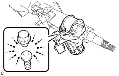 (b) Temporarily install the steering lock actuator assembly to the steering column assembly with a new tapered-head bolt.