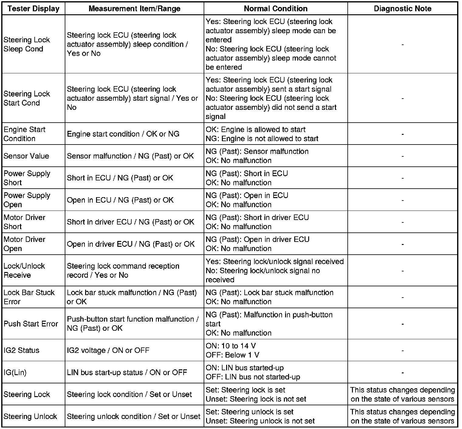 STEERING COLUMN: STEERING LOCK SYSTEM: DATA LIST / ACTIVE TEST
