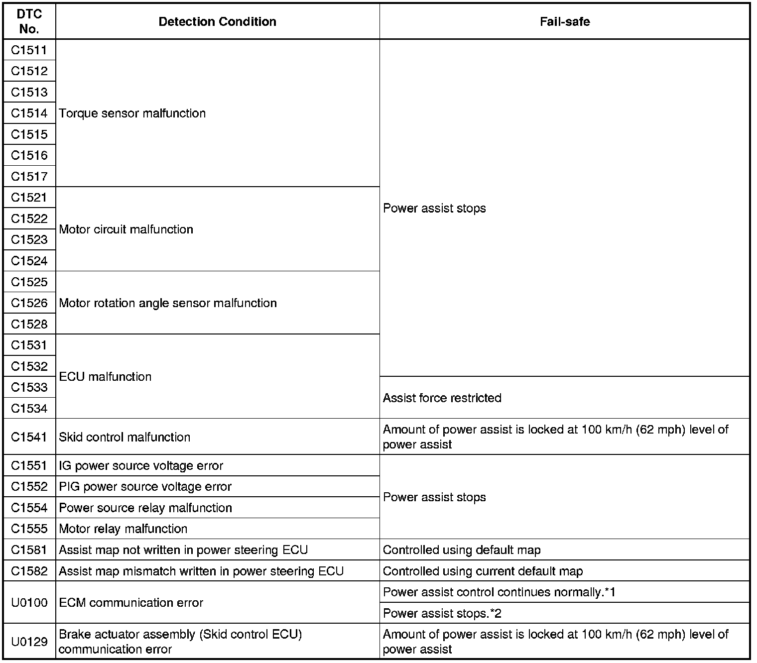POWER ASSIST SYSTEMS: POWER STEERING SYSTEM: FAIL-SAFE CHART