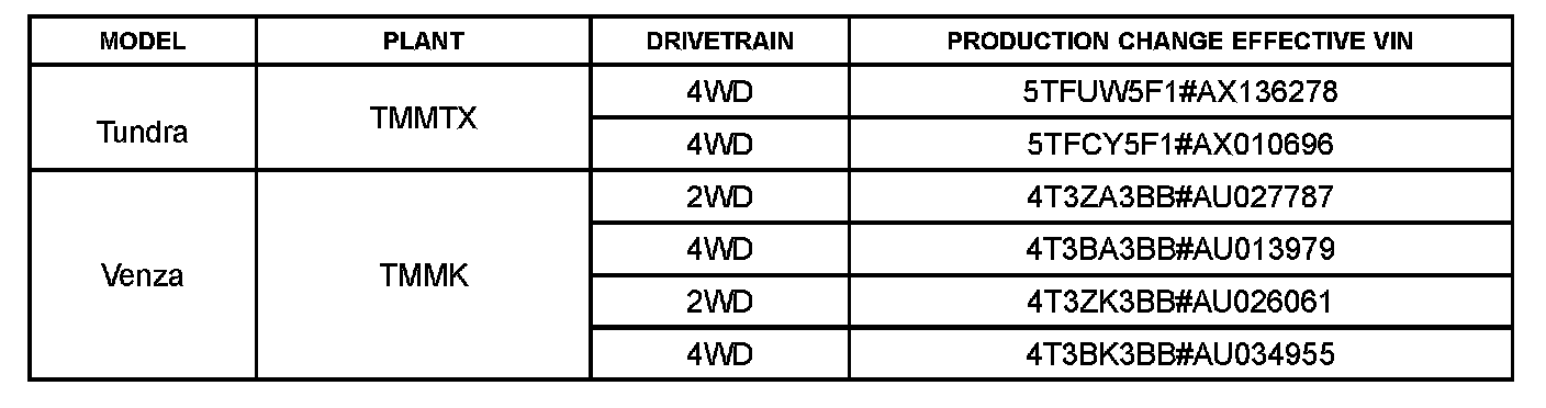 This TSB applies to vehicles produced BEFORE the Production Change Effective VINs shown.