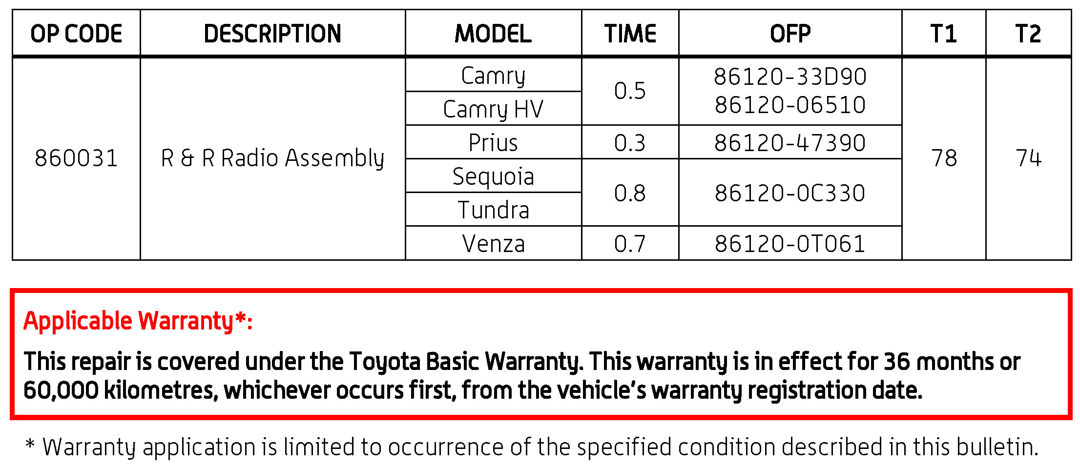 For all models, the radio MUST be ordered through the Denso Exchange Program to qualify for warranty coverage.