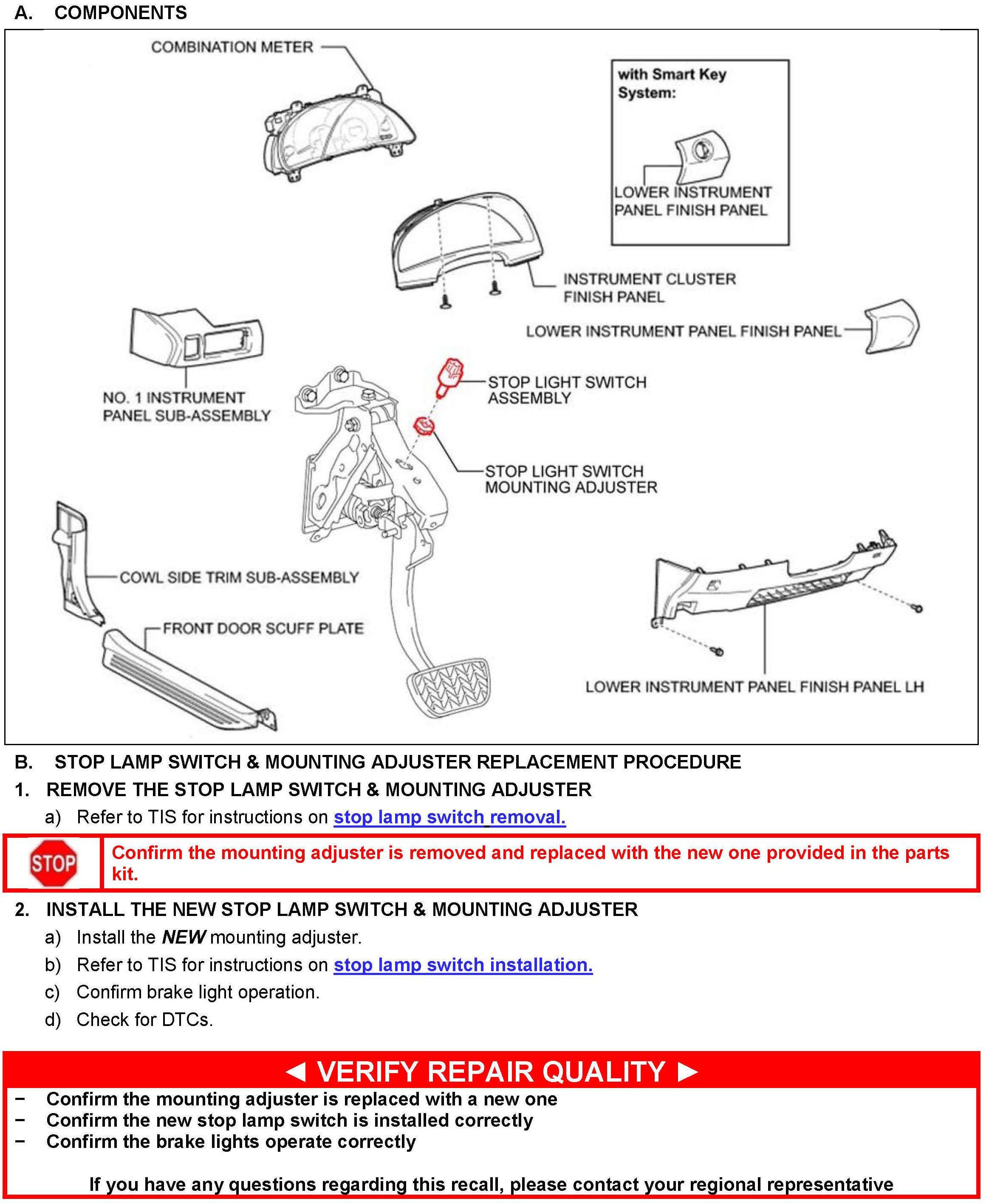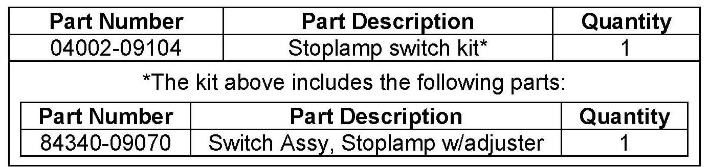 STOP LAMP SWITCH & MOUNTING ADJUSTER REPLACEMENT