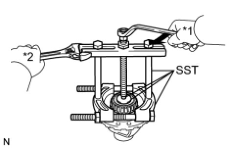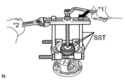 (a) Using SST, remove the front differential case rear tapered roller bearing from the differential case.