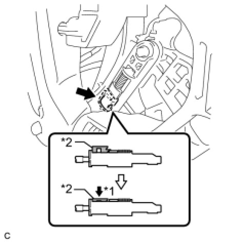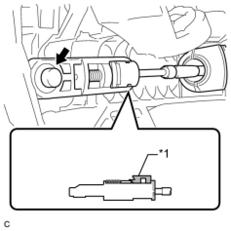 (a) Slide the slider of the transmission control cable in the direction indicated by the arrow and pull the lock piece outward.