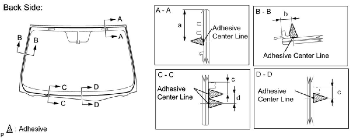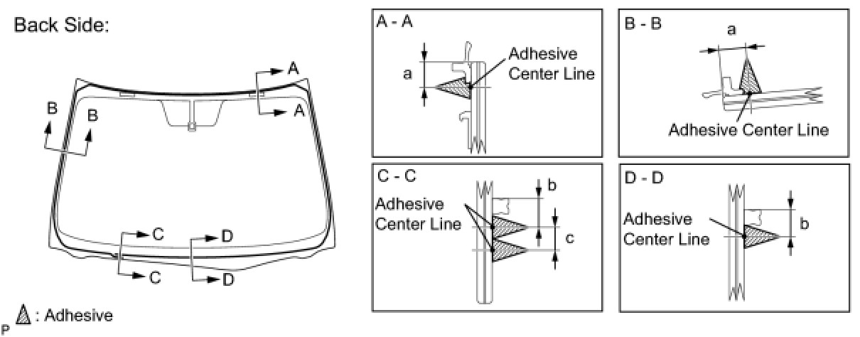 (b) Install a new adhesive dam onto the windshield glass, as shown in the illustration.