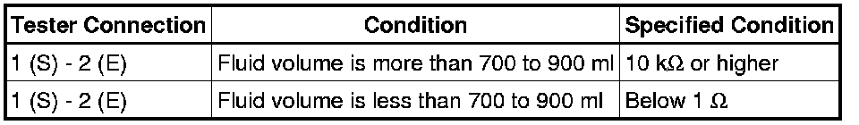 (c) If the result is not as specified, replace the level warning switch assembly.