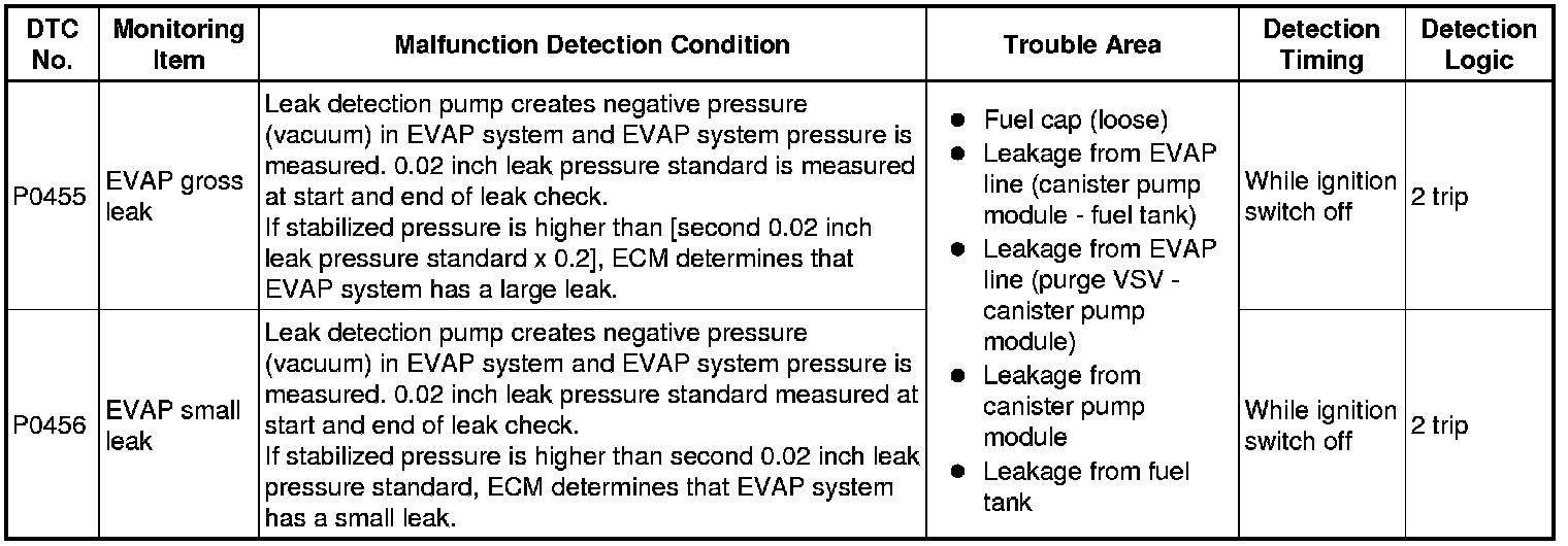 2GR-FE ENGINE CONTROL: SFI SYSTEM: P0455,P0456: Evaporative Emission Control System Leak Detected (Gross Leak)