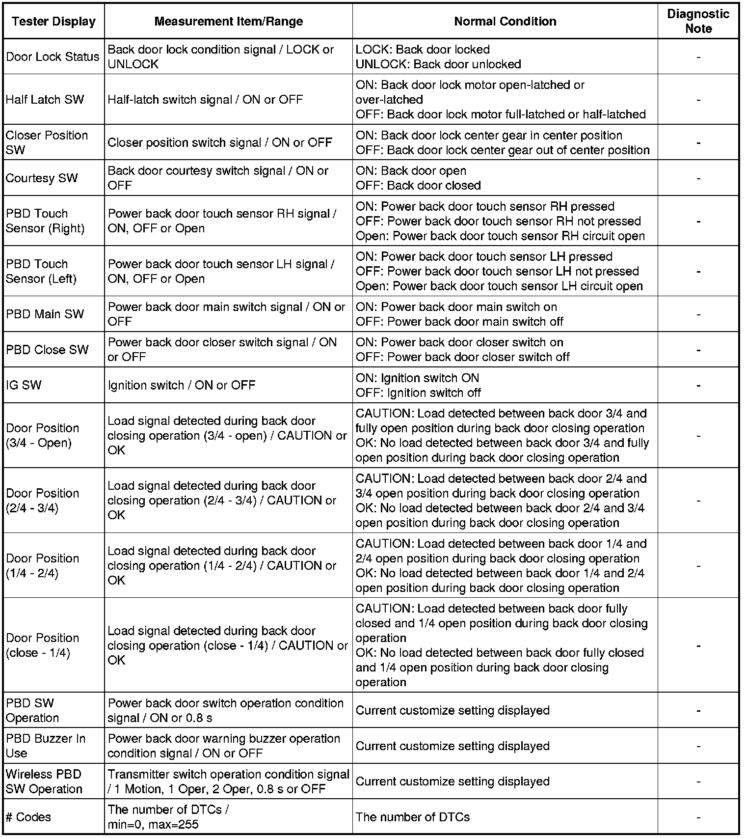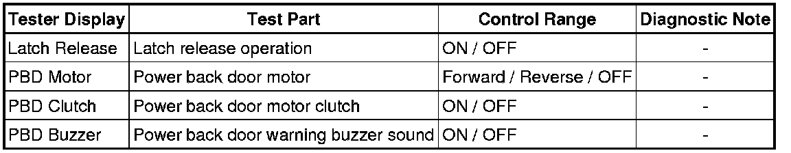 DOOR / HATCH: POWER BACK DOOR SYSTEM: DATA LIST / ACTIVE TEST