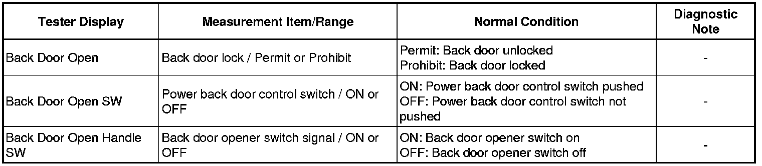 (d) Enter the following menus: Body / Back Door / Data List.