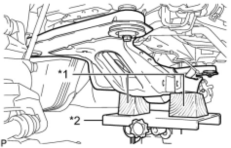 (a) Support the rear suspension member using a jack and 2 wooden blocks as shown in the illustration.