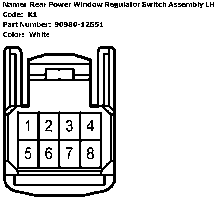Rear Power Window Regulator Switch Assembly