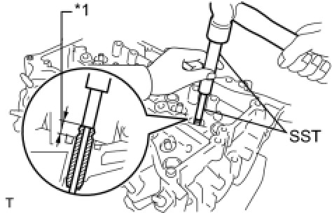 (c) Using SST and a hammer, tap out the exhaust valve guide bushes.