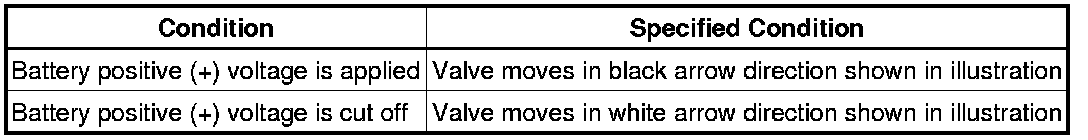 (1) Connect a battery positive (+) lead to terminal 1 and negative (-) lead to terminal 2, and check the movement of the spool valve.
