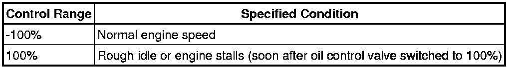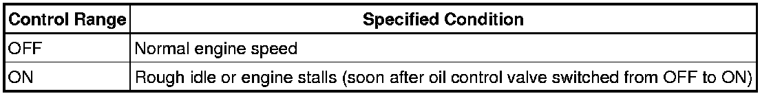 (3) If the operation is not as specified, check the oil control valve, wire harness and ECM.