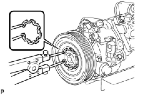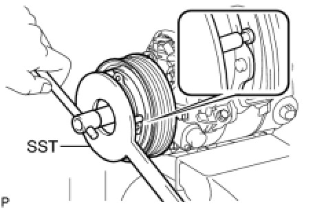 (b) Using SST, hold the magnetic clutch hub.