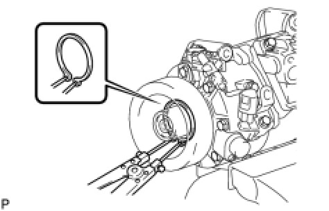 (d) Using a snap ring expander, remove the snap ring and then remove the magnetic clutch rotor.