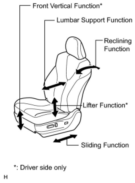 (1) Operate the power seat switches and check to make sure each seat function works: