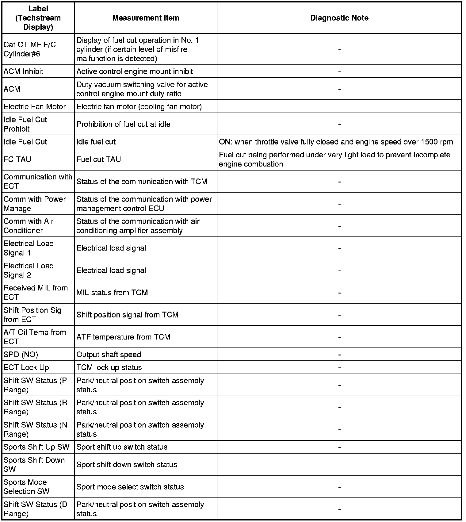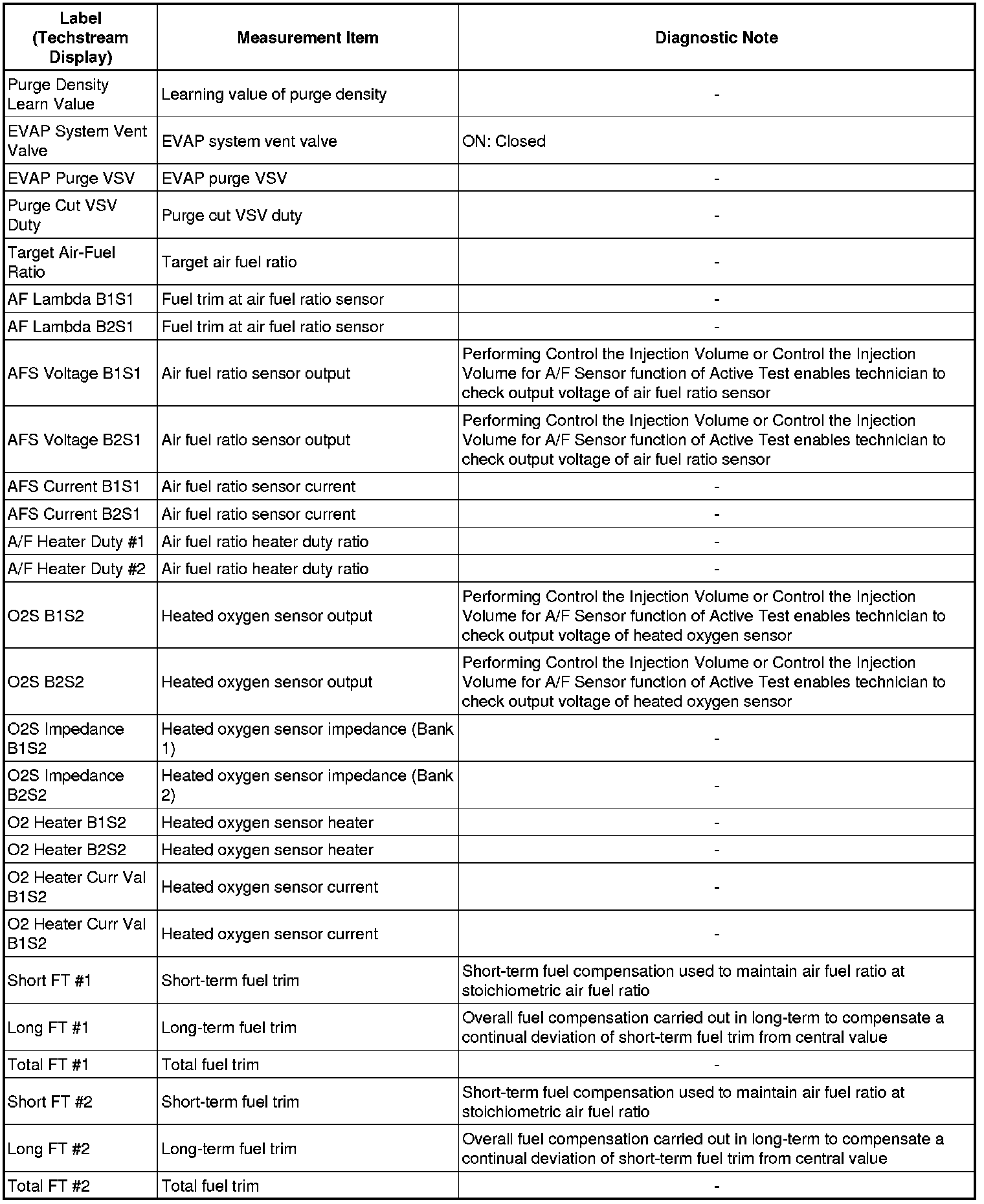 2GR-FE ENGINE CONTROL: SFI SYSTEM: FREEZE FRAME DATA