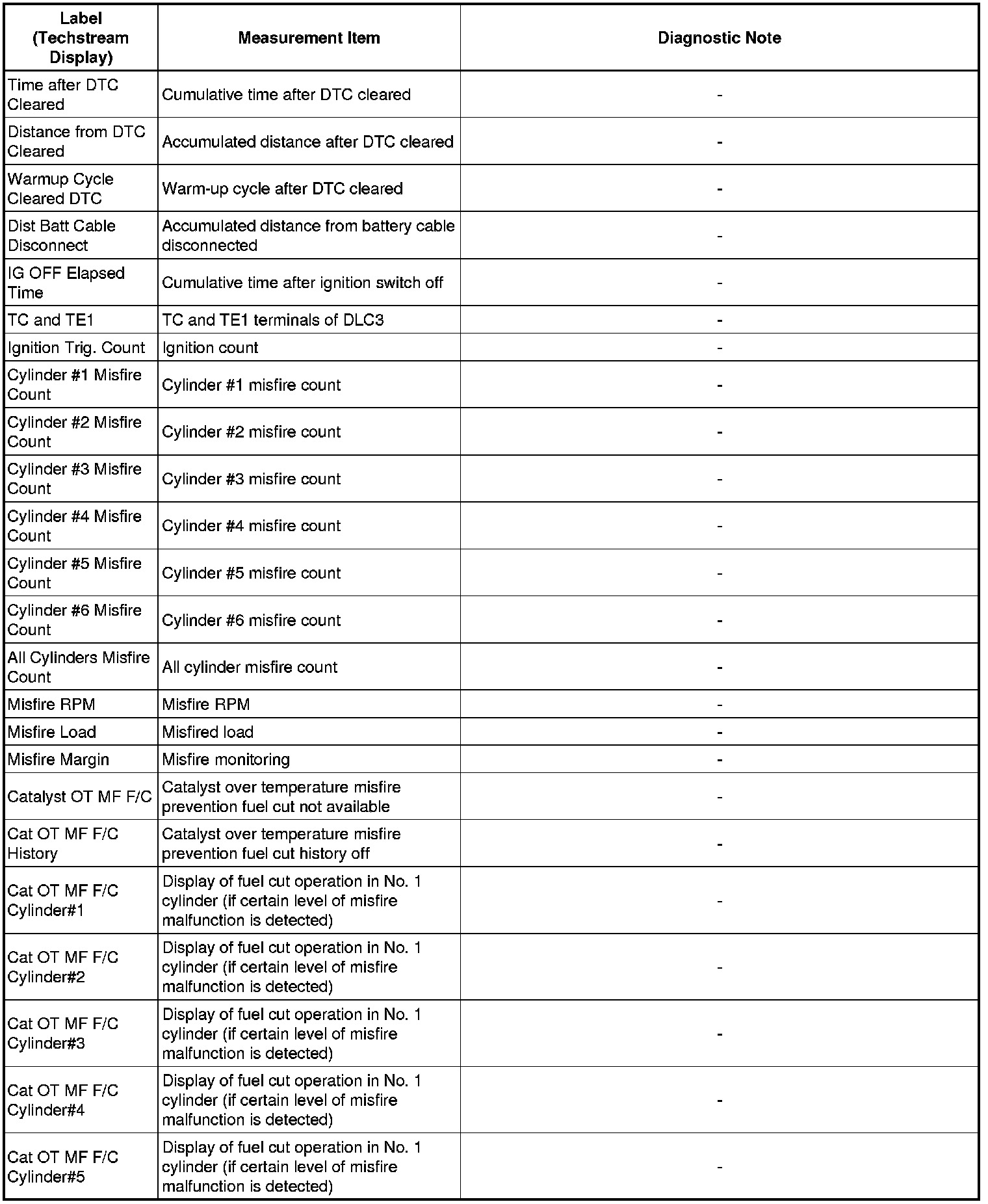 * The ECM records engine conditions in the form of freeze frame data every 0.5 seconds. Using the Techstream, 5 separate sets of freeze frame data, including the data values at the time when the DTC was set, can be checked.