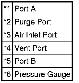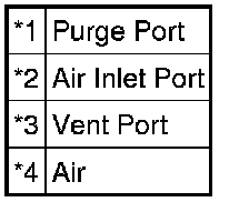 (1) With the purge port closed, blow 1.67 kPa (0.017 kgf/cm2, 0.24 psi) of air into the vent port, and check that air flows from the air inlet port.